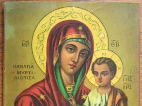 Η εικόνα της Παναγίας όπως θέλει η παράδοση, βρέθηκε από έναν βοσκό ανάμεσα σε Μυρτιές.