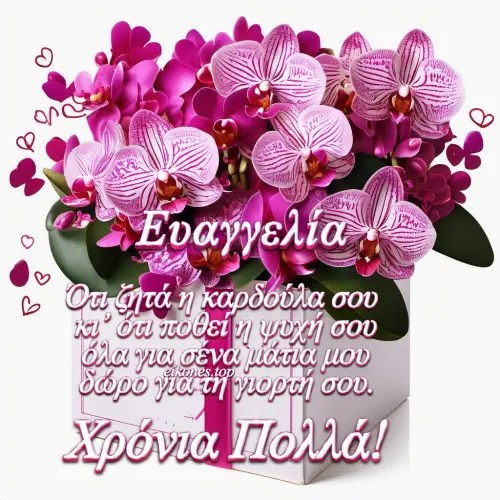 Μείνετε συντονισμένοι για να ανακαλύψετε τις πιο όμορφες ευχές για την Ευαγγελία, συνοδευόμενες από υπέροχες εικόνες που θα προσθέσουν λάμψη στη γιορτή της.